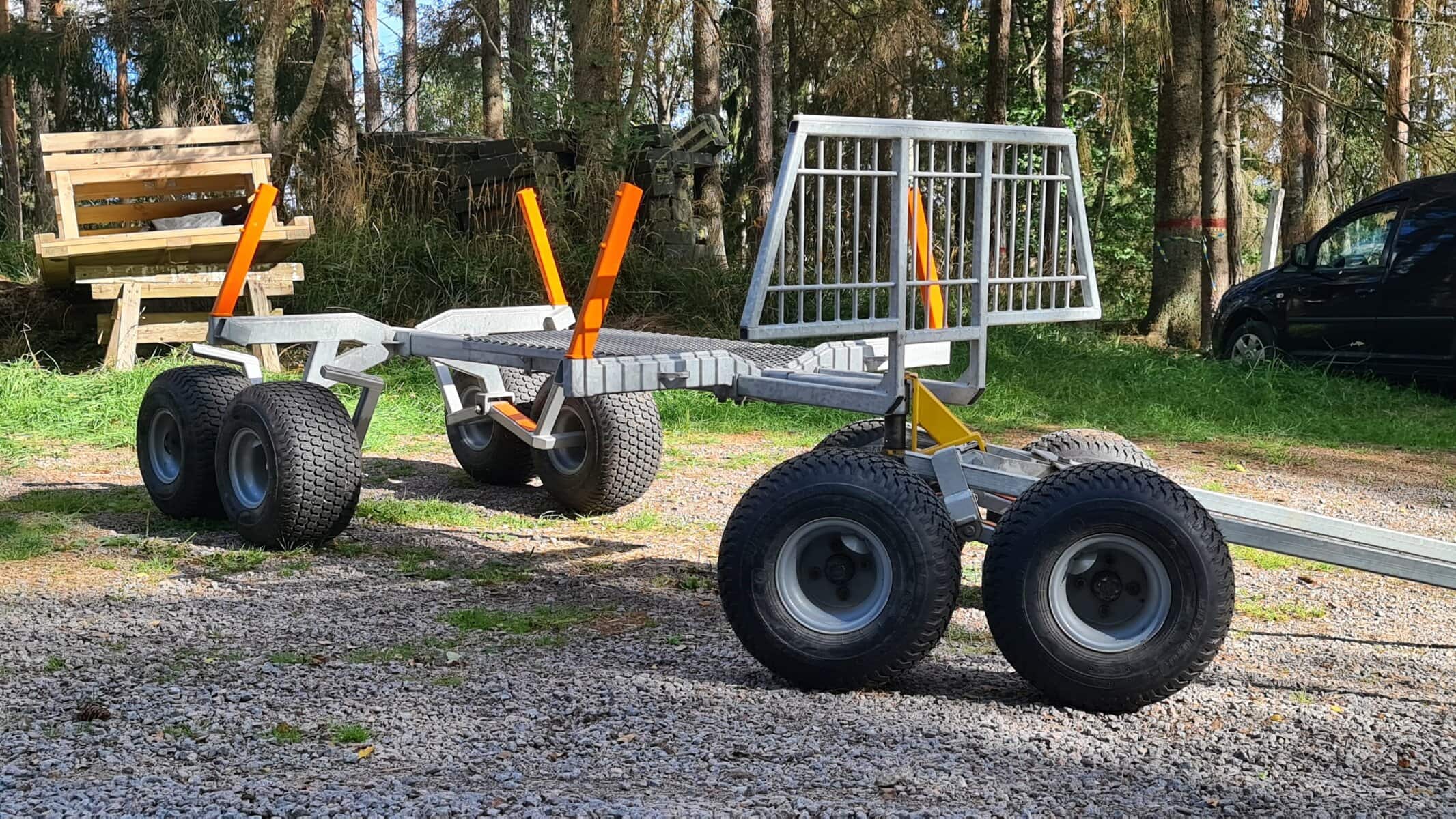 TW4 är en flerfunktionsvagn avsedd för skogsarbete i första hand men kan också användas som en arbetsvagn med tillvalet flak. Vagnen har en ”ryggrad” med justerbar längd, vilket gör att du kan anpassa ekipaget efter specifika syften. Vagnen har åtta stycken boogiehjul som anpassar sig perfekt efter markytan och klarar den tuffaste terrängen. Tack vare detta håller lasten sin plats stabilt och du riskerar inte att tappa något. Laststagen ändrar du med ett enkelt handgrepp utifrån vad du ska bruka vagnen till, inget verktyg behövs.